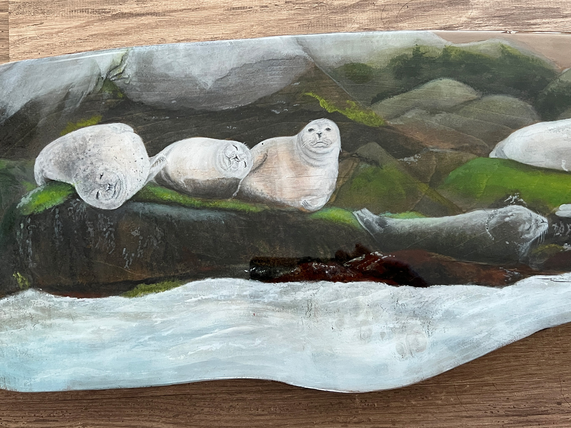 “Harbor Seals” Acrylic/Epoxy on Black Walnut